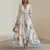 Falda plisada de manga larga con cuello en V estampado para mujer Vestido largo Vestidos de mujer Ropa al por mayor